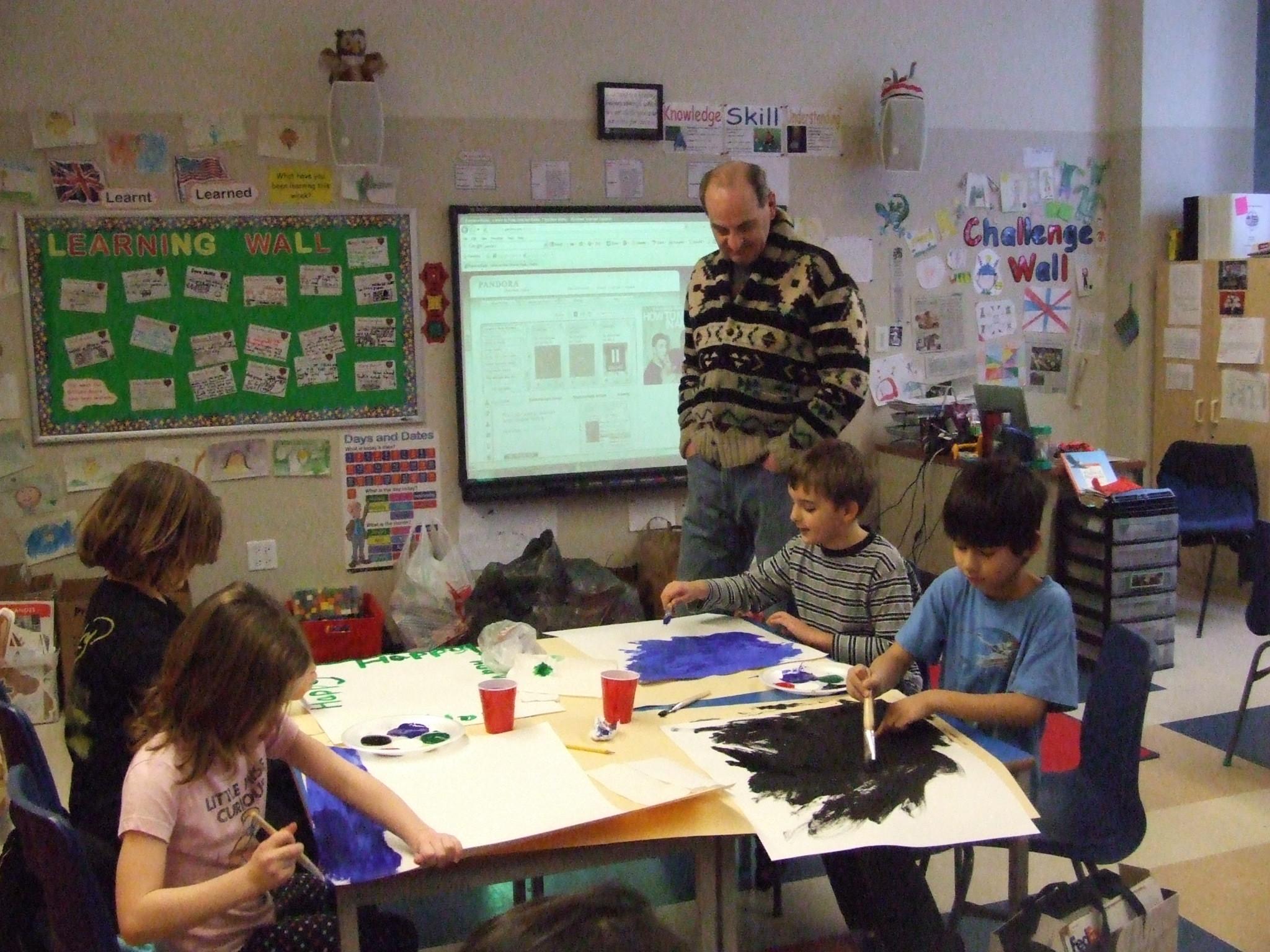 Artist James Paradiso assists students from The British School in Chicago, IL in the creation of their art projects.