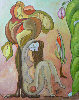 Mila Ryk Tree of Life 1 Oil on Linen, 16 x 20" on display at Trendy Haircuts |
