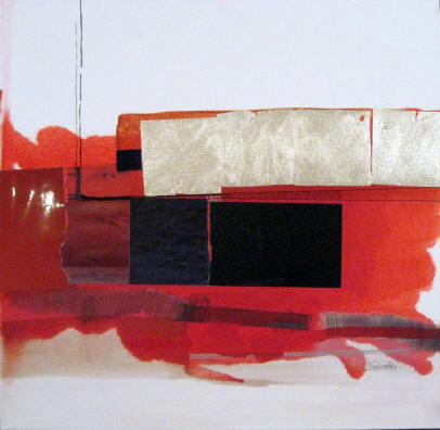 Schroeder Red Series 4907 Mixed Media, 18 x 18" on display at Cork & Canvas |