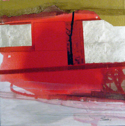 Schroeder Red Series 5607 Mixed Media, 18 x 18" on display at Cork & Canvas |