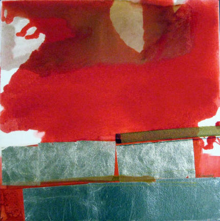 Schroeder Red Series 5007 Mixed Media, 18 x 18" on display at Cork & Canvas |
