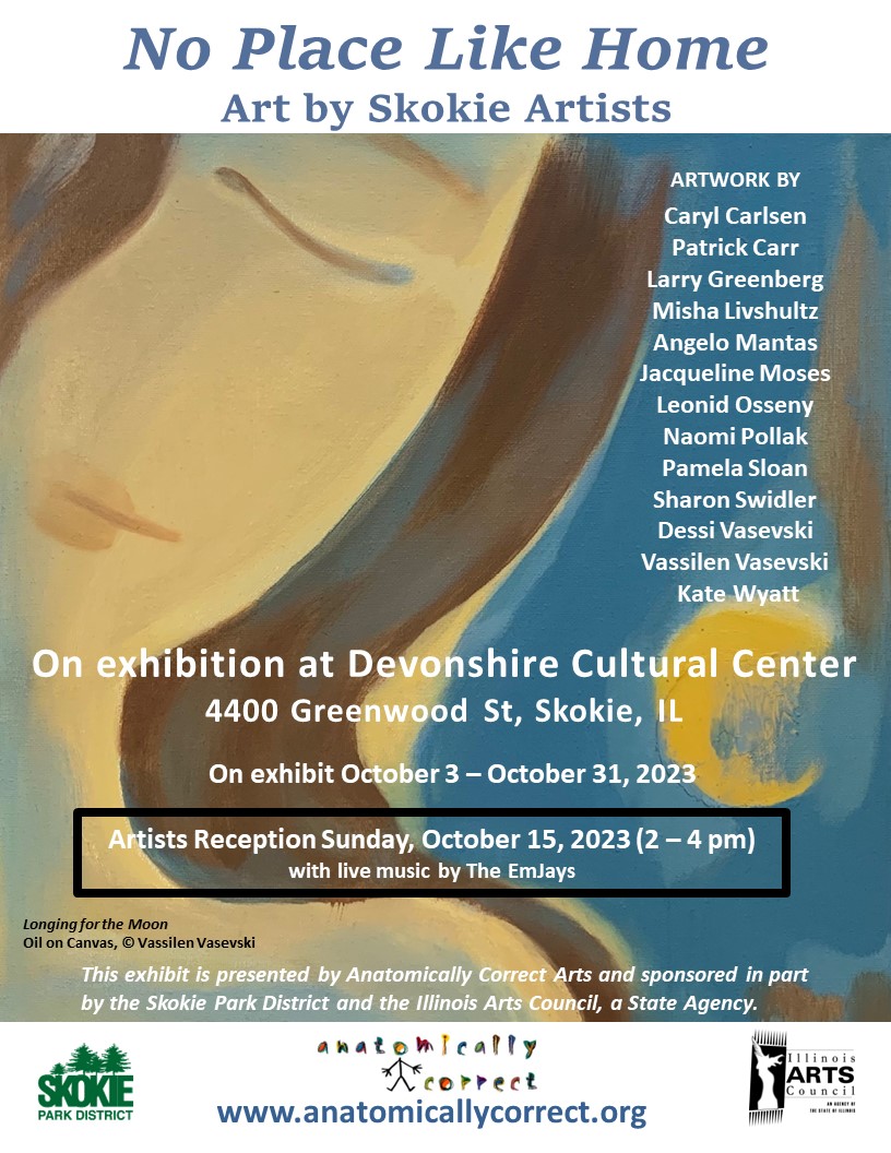 Caryl was born in Chicago, grew up in Evanston, and currently lives in Skokie. She loved to draw nature and people as a child and later, studied art, design, and sociology at Michigan State University. She also has an MSW from Loyola University. She studied art at the Art Institute of Chicago and with various art instructors at the Evanston Art Center in figurative, landscape and abstract drawing and painting. She currently is a member of C.A.V.A. and the Womens’ Caucus for the Arts. Her current body of work is an exploration and abstraction based on elements in nature, incorporating an interest in fluid movement, intuitive color relationships, the contrast between geometric forms and organic elements interpreted through dynamic brushstrokes and her feelings. She has exhibited work locally, nationally and internationally, San Miguel de Allende, Mexico and Saint- Cirq -la -Popie, France and several Anatomically Correct exhibitions at the Devonshire Cultural Center in Skokie, IL.