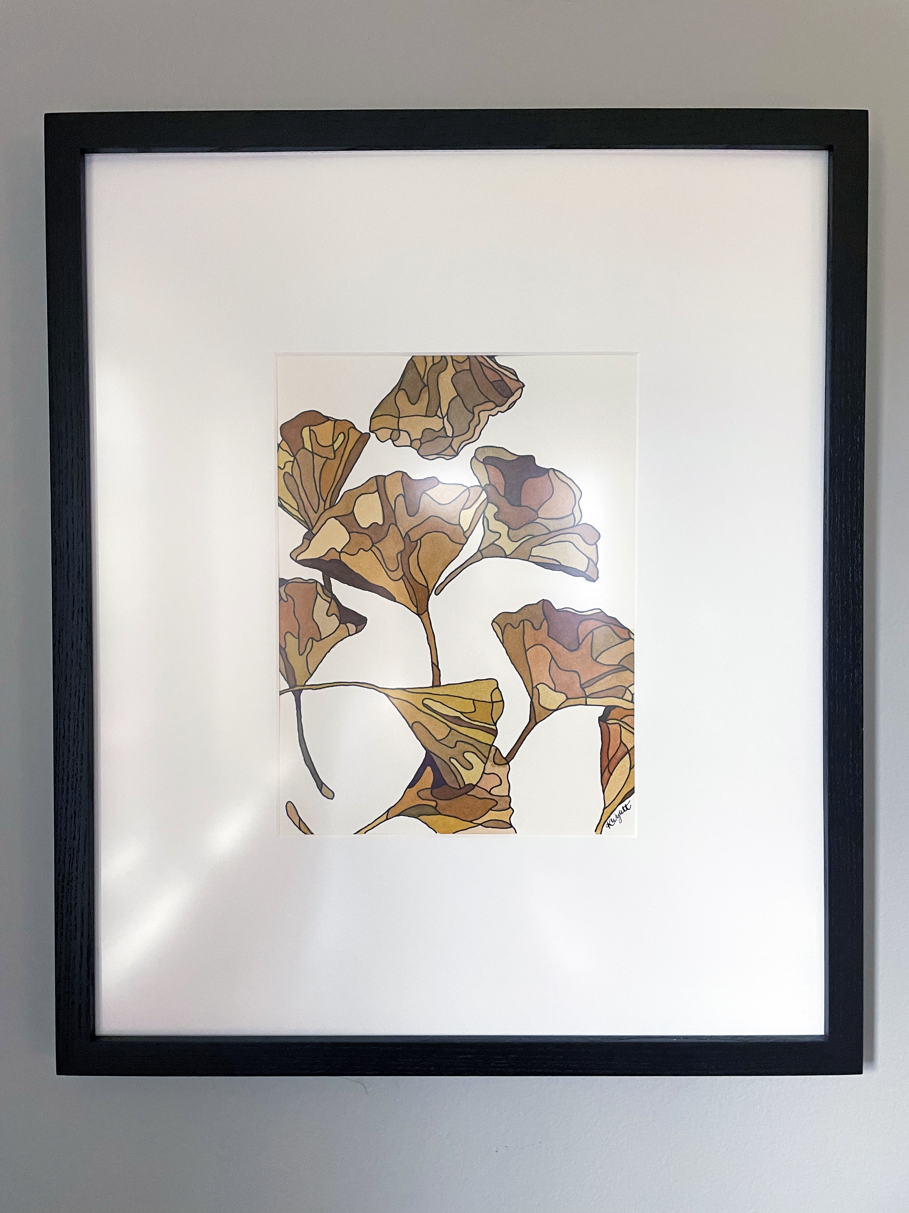 Ginkgo Leaves, Watercolor and ink, 17 1/4" x 20 1/2" framed $350 © Kate Wyatt