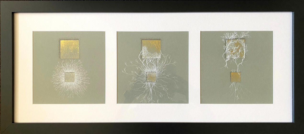 Fungi Triptych, Ink on paper, 32 x 14 x