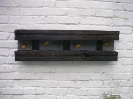 Tracks wooden skid (pallet), stain, and house paint 10.5"H x 37"W |
