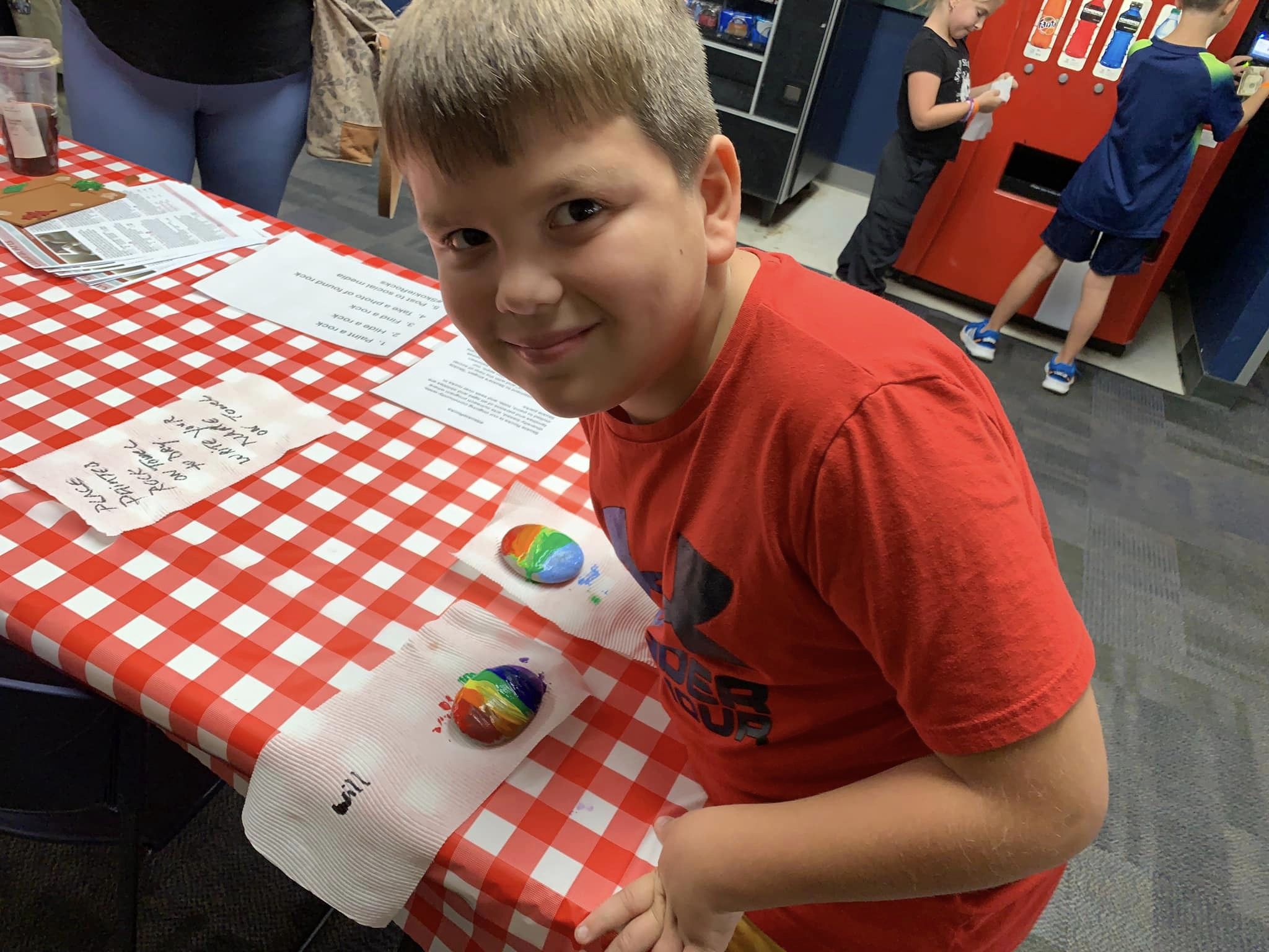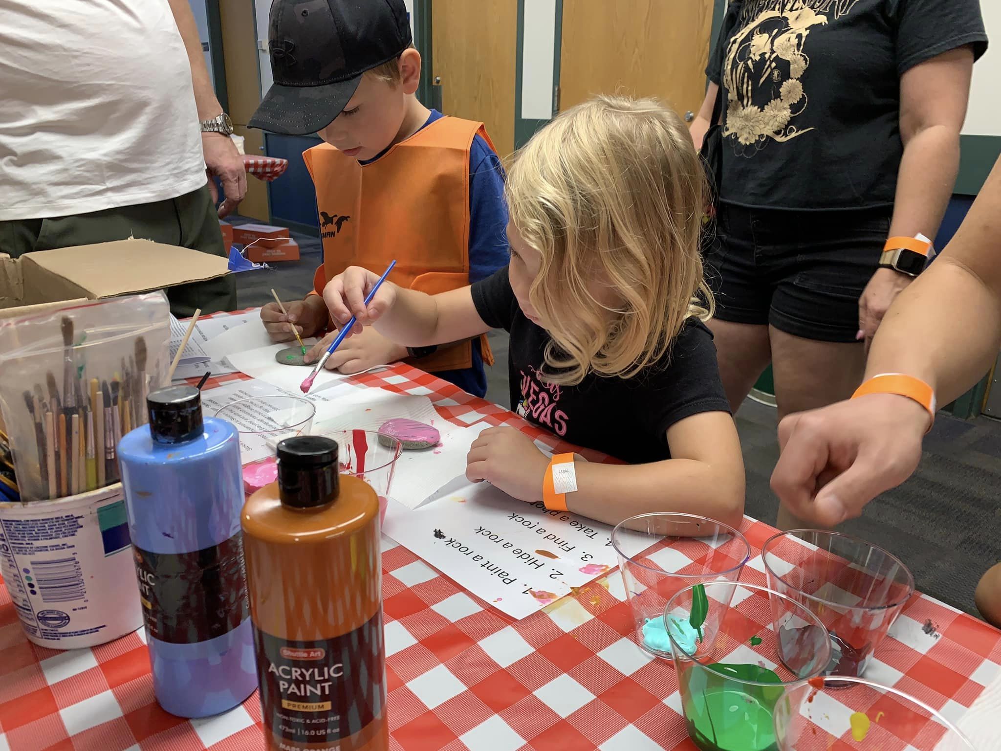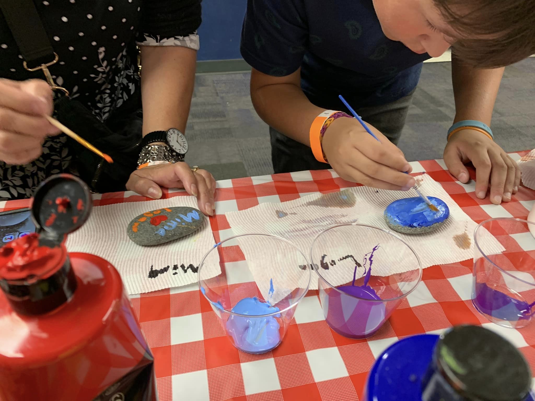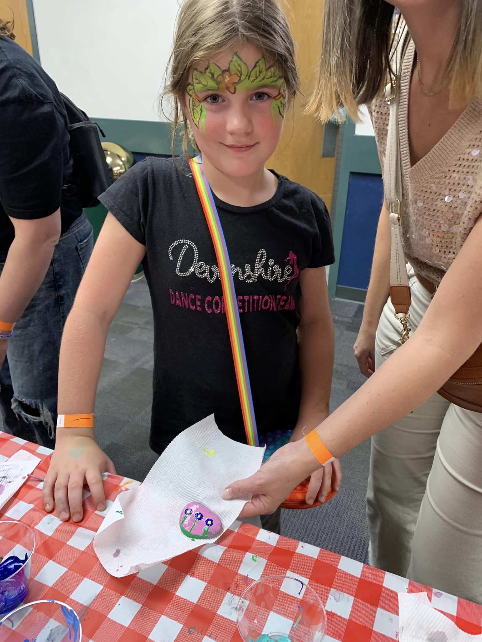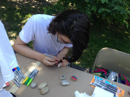 Rock Painter Student Volunteer helps youth paint their rocks