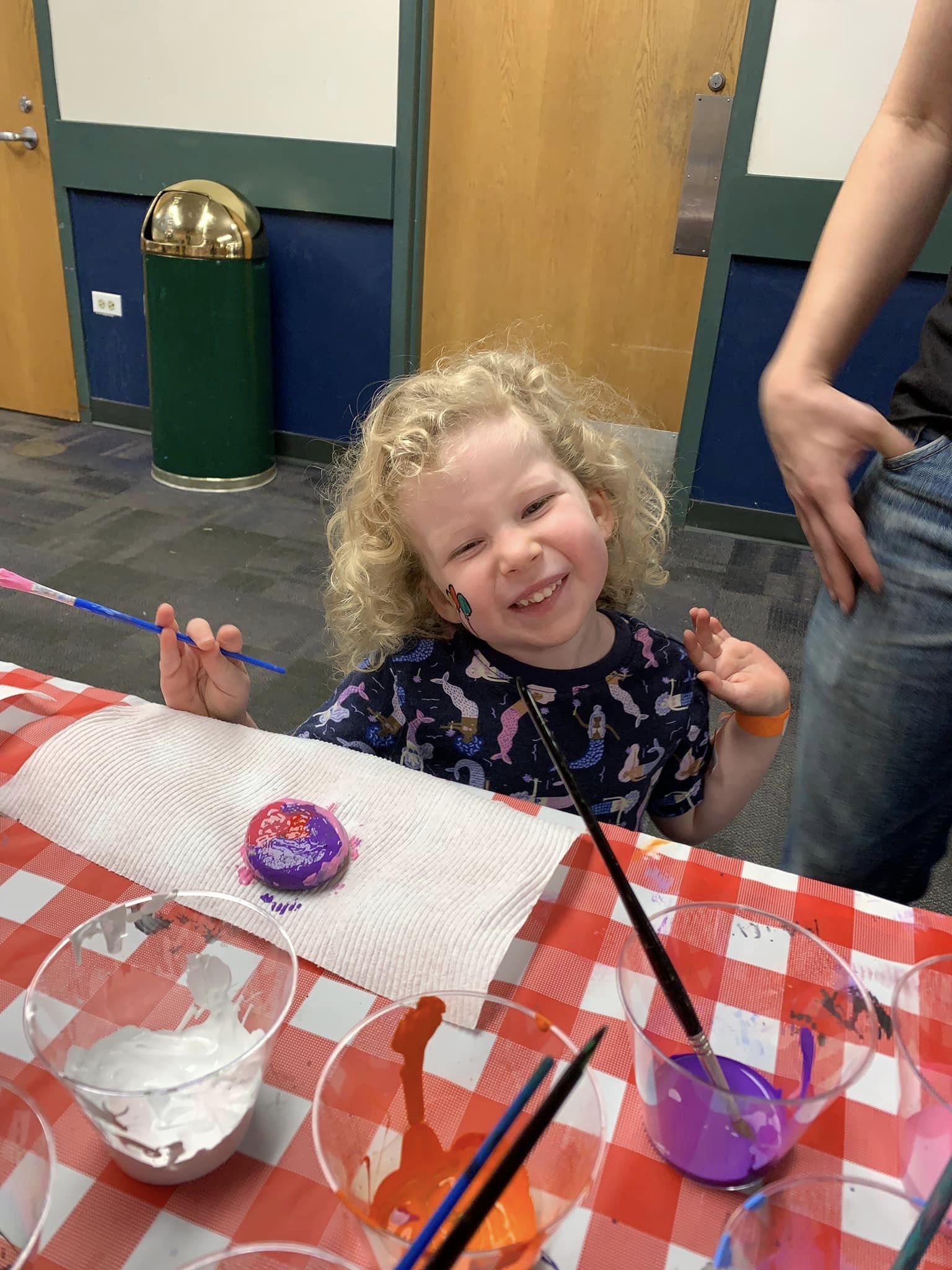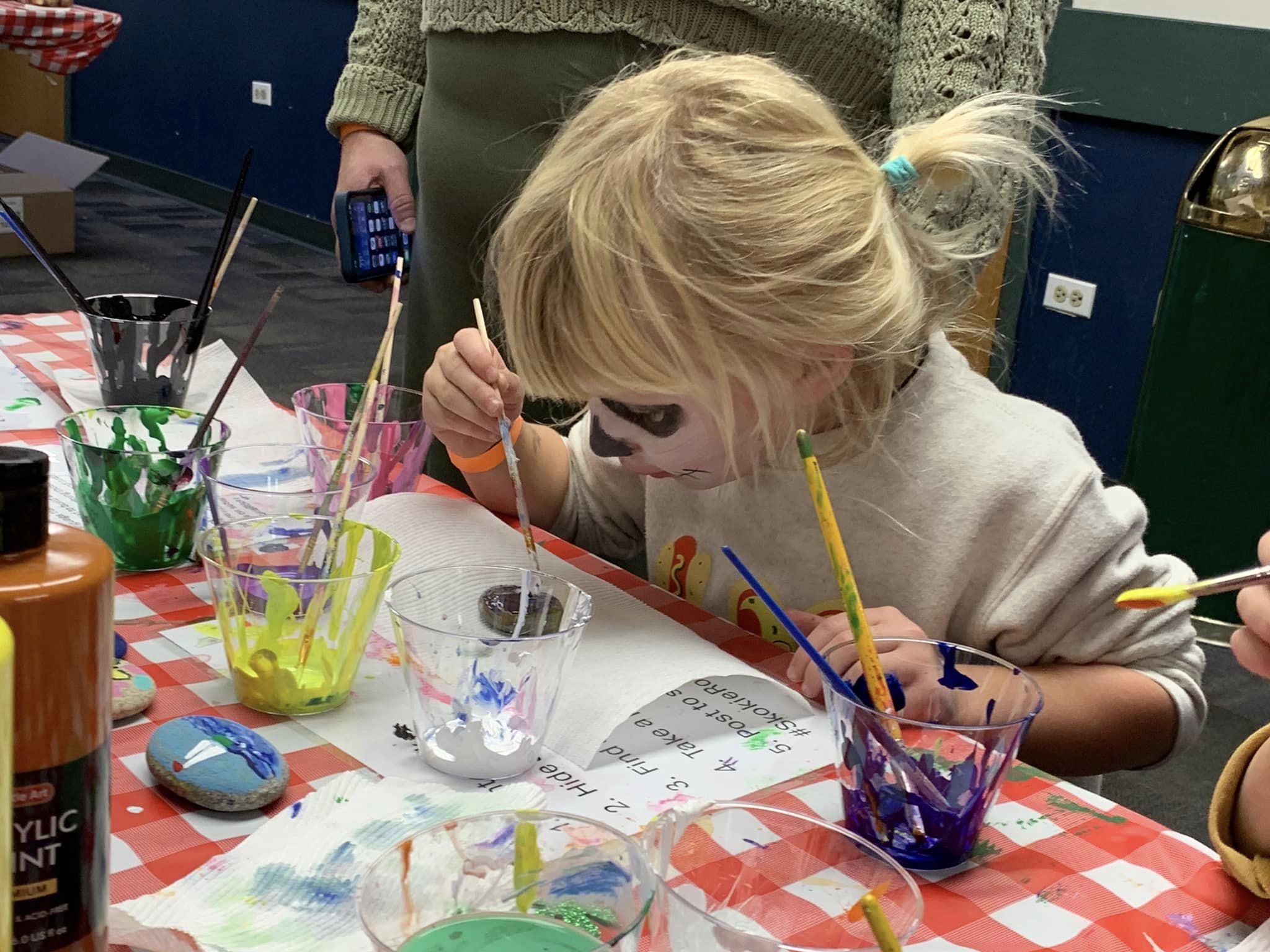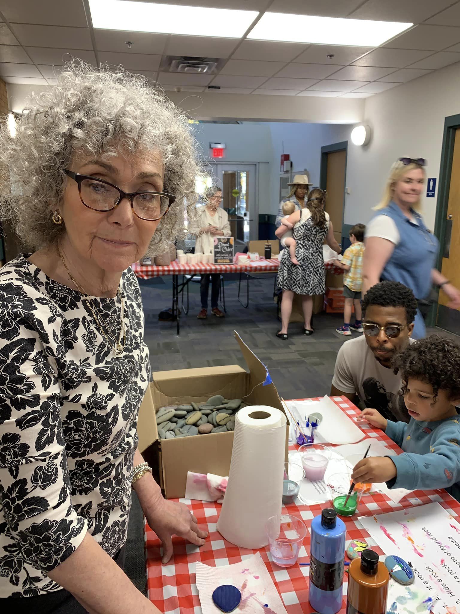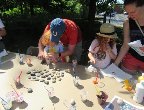 Rock Painter volunteer assisting with rock painting