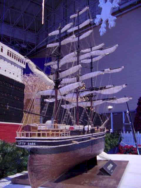 In 2001, Wayne Kusy's toothpick replica of the Queen Mary was exhibited at WINTER WONDERFEST at Chicago's Navy Pier. A 2 year work- in-progress, the ship is 25 feet long and made of 540,000 toothpicks and 11 gallons of wood glue -- so far. It is built in 6 sections and weighs approximately 200 pounds. With every show, something new is added. In approximately a year, Wayne estimates it will be complete.