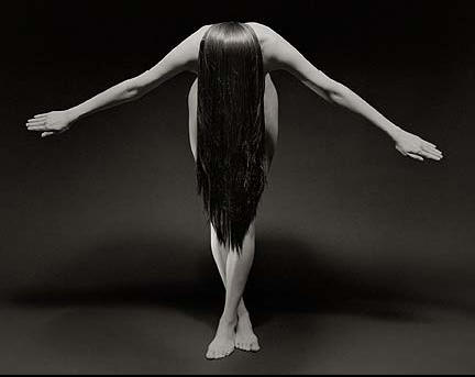 TED PREUSS, photography.A devotee of feminine beauty, Ted Preuss approaches the photographic study of the female body by emphasizing relaxed and self-possessed expression over abstract form or blatant sensuality. More than anything else, Preuss' subjects are like dancers caught in a moment lifted out of a fluid process that has absorbed all their energy in a quest for grace. A careful and accomplished printer, Preuss enhances the sense of admiration that he has for his subjects by presenting them in subtle amber-toned platinum-palladium images that augment complexity and individuality. Divided among miniatures that accentuate line and light, and larger impressions that bring out personality, the most successful of Preuss' studies maximize self-involvement, as when we see a model, shot from behind, leaning against the back of a draped chair with her hand resting on the back of her head. (Michael Weinstein)