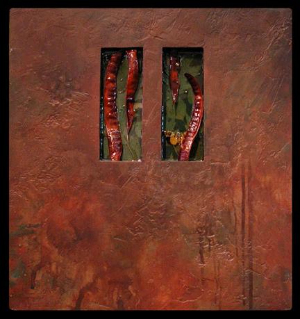 Green Mist Acrylic, Plaster, Copper and Leaves on Wood 24 x 28 x 3" $1,450 |