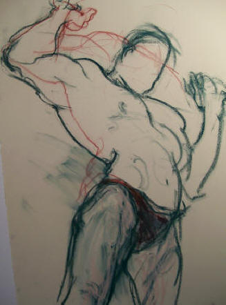 Bacon, recognized more for her murals than drawings, says Rosenthall's photographs were able to capture Wise's muscles in the second of their "peak perfection," while the women's drawings - accomplished during extended sessions with Wise every Saturday throughout the winter months - capture beyond that peak moment. "The drawings are very gestural and emotional; they are very powerful. They try to get past what you think you know and what you will see. It's all about intuition," Bacon stresses.