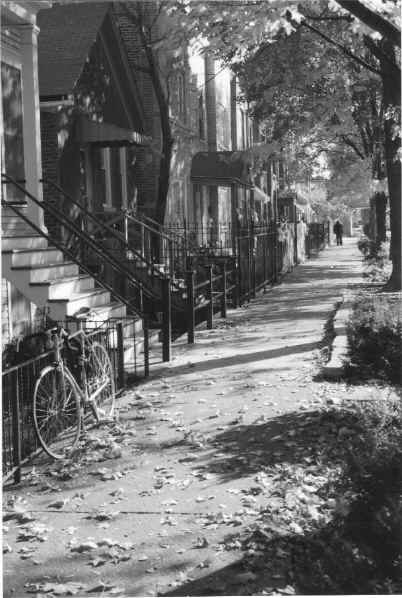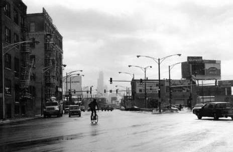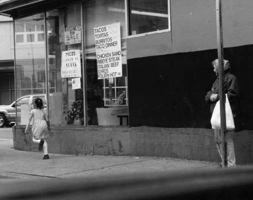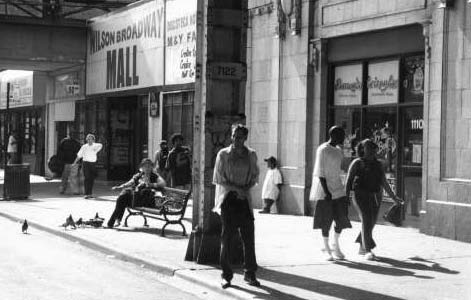 Purvis explains further in his artist's statement, "Since 2003, I have dedicated myself to capturing the vitality of Chicago's vanishing neighborhoods and communities. I began this mission as a taxi driver where each day offered an exciting element of surprise. I never knew where a passenger was going to take me, so I kept the camera at my side and waited for the perfect street scene to unfold (the bright evening sun shining its light on a neighborhood hotel, people in various poses standing at a bus stop, or the average pedestrian moving toward the unknown destination). The challenge for me was to recognize being in the right place, at the right time (sometimes the wrong time), and capture the moment. As time went on, I could see that the city was changing. Pieces of the city that I had taken for granted were slowing disappearing..."