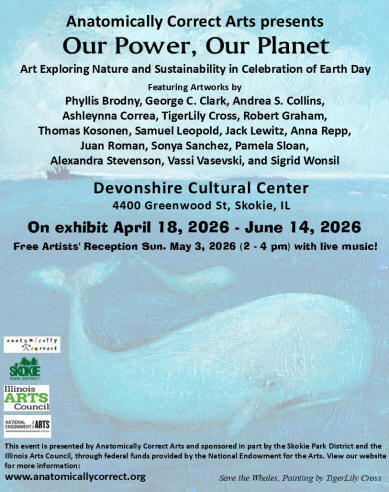 Featuring Artworks by Phyllis Brodny, George C. Clark, Andrea S. Collins, Ashleynna Correa, TigerLily Cross, Robert Graham, Thomas Kosonen, Samuel Leopold, Jack Lewitz, Anna Repp, Juan Roman, Sonya Sanchez, Pamela Sloan, Alexandra Stevenson, Vassi Vasevski, and Sigrid Wonsil ON EXHIBITION April 18, 2026 - June 14, 2026 Artists' Reception: Sun. May 3, 2026 (2 - 4 pm) On Display at Devonshire Cultural Arts Center 4400 Greenwood St, Skokie, IL 60076 Awarded 2024 Skokie Fine Arts Commission Program Award! COMING TO SKOKIE'S BACKLOT BASH FESTIVAL IN 2026! Skokie Rocks is our community-wide, diversity-based, arts outreach program where families and persons of all ages and abilities are invited to paint, hide, and seek river rocks in Skokie parks. In direct complement to Skokie's slogan "Skokie Welcomes Everyone" and with the help of social media and language translation apps, our program is intended to build bridges between different communities helping those who speak different languages to connect and communicate through art. “Rock Hunters” are invited to paint rocks, label the underside #SkokieRocks and place them in Skokie parks. Rock finders can share images of the found rocks on our social media with the hashtag #SkokieRocks.