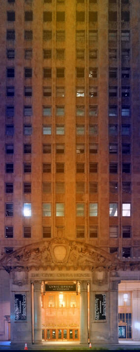 CIVIC OPERA HOUSE/LYRIC OPERA, 20 NORTH WACKER, CHICAGO, IL Opening November 4, 1929 as The Civic Opera House (six days after the stock market crash), it features an Art Deco interior with additional art deco details on the exterior. It is a majestic limestone skyscraper with a 45-story office tower and two 22-story wings. With 3,563 seats, it became the second-largest opera auditorium in North America. Businessman Samuel Insull envisioned and hired the design team for building a new opera house to serve as the home for the Chicago Civic Opera. The building has been seen as being shaped like a huge chair and is sometimes referred to as "Insull's Throne." Insull selected the architecture firm Graham, Anderson, Probst & White who were responsible for numerous buildings in the downtown Chicago Loop (including the art deco Merchandise Mart and the former Morton Salt headquarters building next door to the Civic Opera House at 110 N Wacker, constructed in the 1950s). As they did on other occasions, the architects commissioned Henry Hering to produce architectural sculpture for the building. The inaugural season was marked by the première of Camille, a modern opera by 28-year-old Chicago-composer Hamilton Forrest July 15, 1929. It was commissioned by the Civic Opera's prime star and manager, Mary Garden. The opera received mixed reviews and parts of it were broadcast in the Boston area. The Civic Opera is the only house in which the work has ever been performed. Lyric Opera purchased the Civic Opera House (renamed it The Lyric Opera House) and adjacent backstage spaces from the building’s owner in 1993. This was the first time in the history of the opera house that the resident opera company actually owned the space. Lyric simultaneously launched a $100-million capital campaign: Building on Greatness...An Opera House for the 21st Century, to finance the purchase and renovation of the art-deco house and began a major renovation in 1993, completing it in 1996.